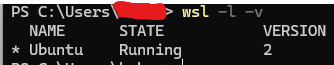 먼저 WSL머신이 시작을 잘했는지 확인하기 위해 아래의 명령어를 확인하여 상태를 확인합니다.