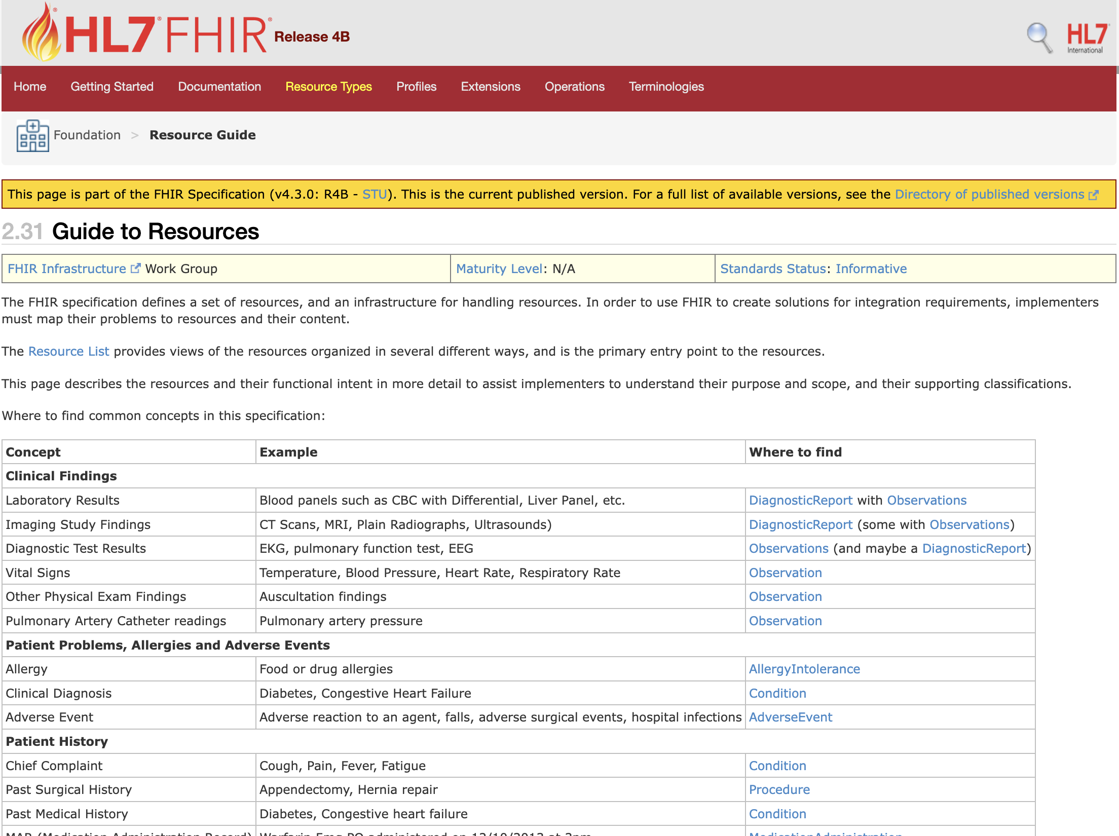 위 내용은 FHIR 공식 홈페이지에 나와있는 내용인데
